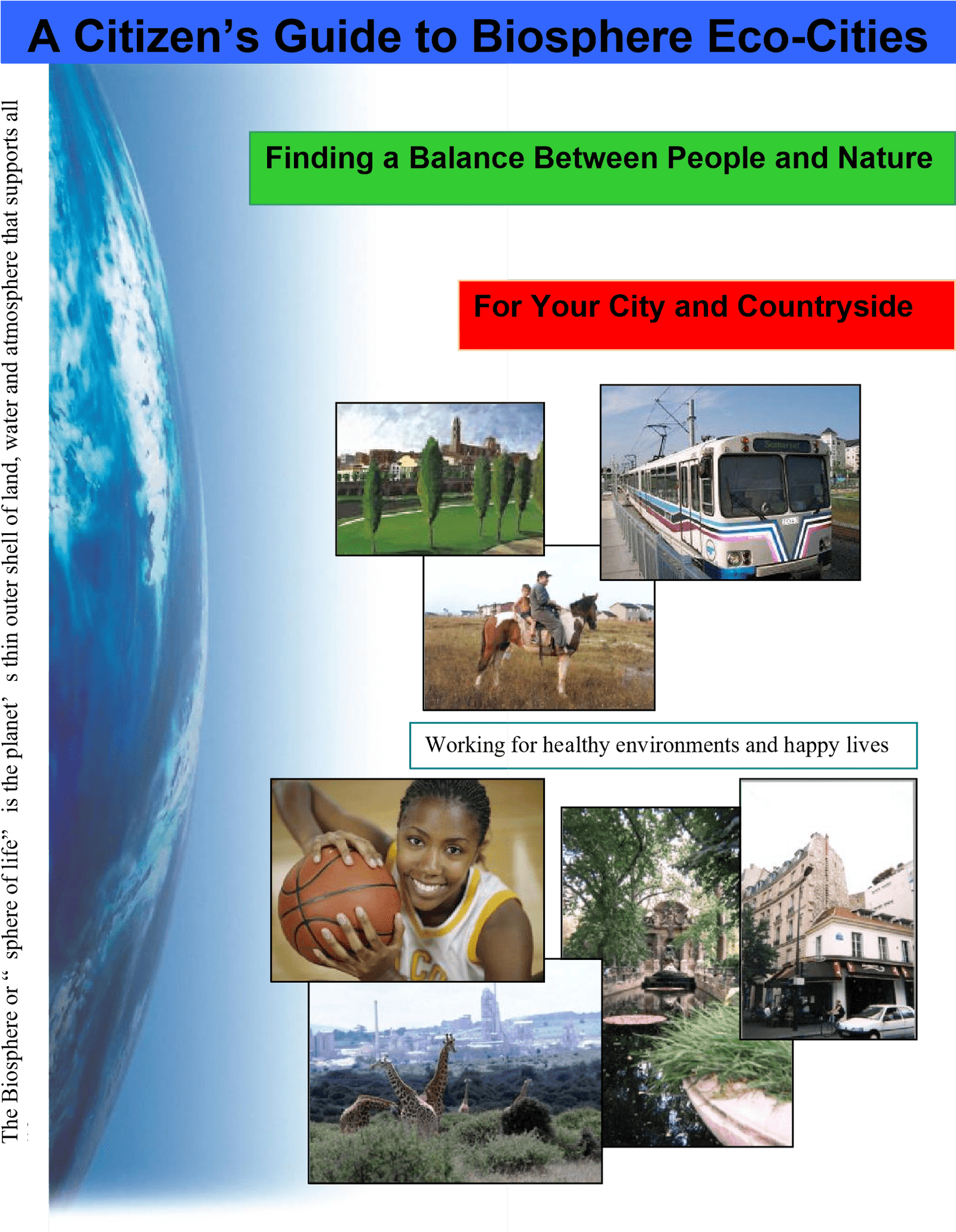 While visiting Brazilian Biosphere Reserves in 2007, J met a colleague (Bernardo) who suggested changing the name from MUDA to Biosphere Eco-City (BEC). J made the change and wrote a Citizen’s Guide to Biosphere Eco-Cities (cover photo next), for a 2008 world BR forum.