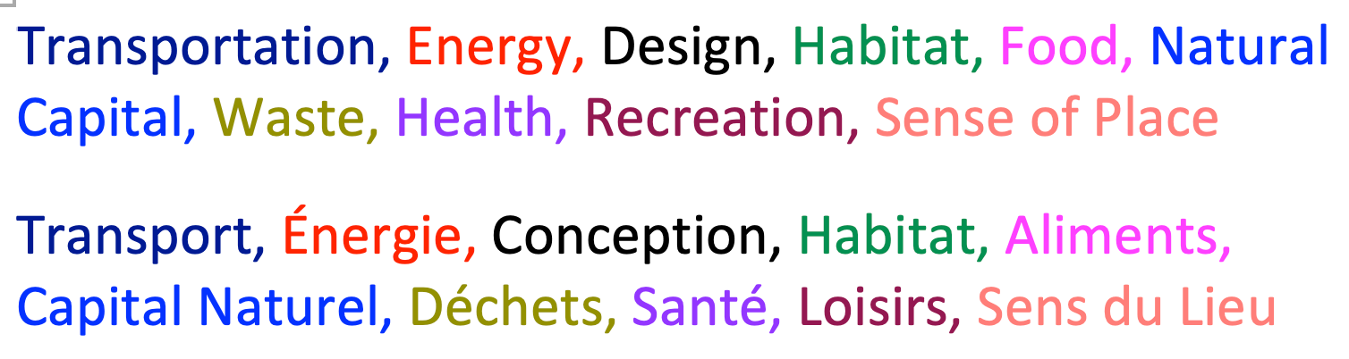 J’s research on urban sustainability revealed an interesting pattern. All direct actions for sustainability fell into 10 broad categories. So these became the 10 Themes of Sustainability of a proposed urban initiative.